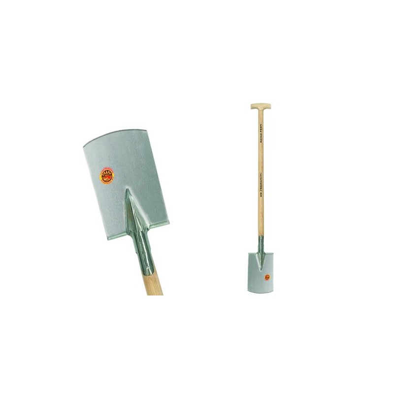 Freizeitspaten Profi, 1/1 poliert, hinten geschlossen. Mit Eschenstiel 90 cm (T-Griff), 105 cm (K-Griff).